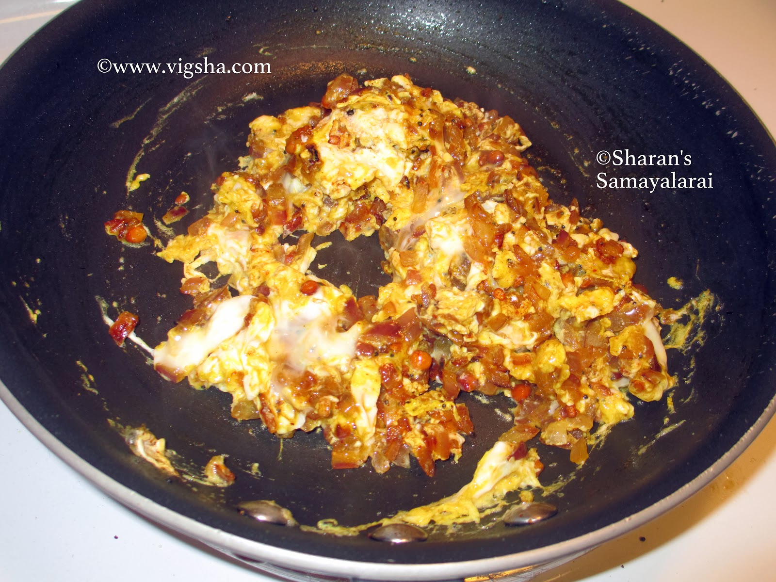 This is an Indian style of scrambled egg. I am posting the basic recipe now, check the notes for variation.